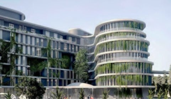 L’edificio di nuova costruzione denominato C, il principale in termini di dimensione e destinazione d’uso, ha uno sviluppo complessivo di circa 20.000 mq (di cui quasi 3.000 mq al piano interrato), uno sviluppo planimetrico di circa 140 x 45 ml per un’altezza totale di 24 ml. Al suo interno è previsto il primo “The Social Hub” di Roma: un albergo di 392 camere, un piano a uffici e spazi di coworking ma anche ristoranti, bar, palestra e piscina. La coesistenza di queste attività ha portato ad un’ottimizzazione delle fasi costruttive soprattutto della parte impiantistica per permettere all’edificio di avere aperture scandite nel tempo. Si sviluppa su sette piani fuori terra ed un interrato e si compone di due bracci principali che si snodano paralleli al sito la Tangenziale a Nord e la ferroviaria a Sud. La configurazione architettonica ha permesso di creare una quinta urbana al vuoto centrale che è diventata nuova piazza e punto di riferimento nevralgico per l’intero complesso.